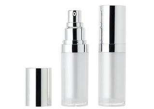 | LA アクリルダブルWALL30mL オーバーキャップ(銀) x エッセンスポンプ銀・スーパースプレイ x 中PET x アクリル30mLシリンダー(パール) |
