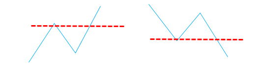 | 水平線 細かく二本のロウソクの位置でもダウセオリーにかなっています。抜けると本当に勢いがあるものです。 トレンド中最新のロウソクが、直前のロウソクを反対に、50%以上抜けたら、即エントリーします。 センスある水平線の引き方 反転時 鉄板N波のブレイクと上記の2原理が混ざっているような気もします ロウソクはこれ以上ない最新の値動き |