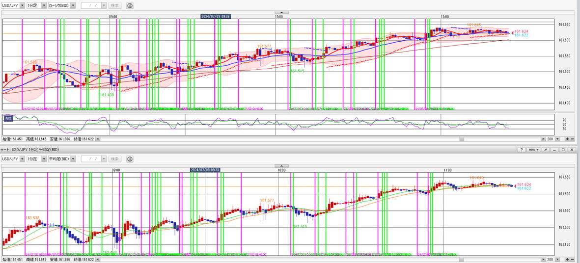 ![]() 良く出る相場 6:4で拮抗ずれが続くと考えます。20240703朝 ![]() |