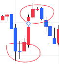 細かいトレンド内のうねりミニトレンドは、 プライスアクションによって始まることが多い。 プライスアクションは上ひげ下ひげ 孕み 包みのことです。 あくまでも傾向 |