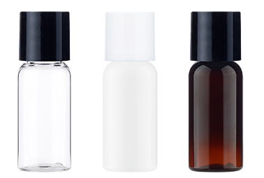| LA PET重厚キャップ+穴中栓+PET30R 20φPP重厚キャップ(黒・白)x中栓(大穴・小穴)xPET30mLラウンド(透明・白・茶) |