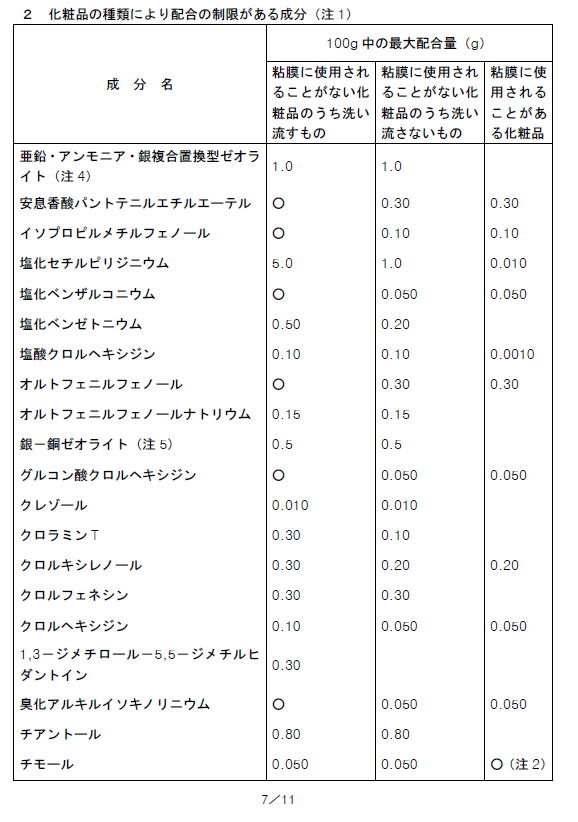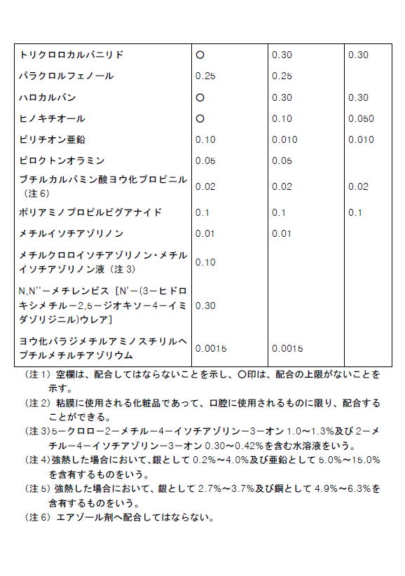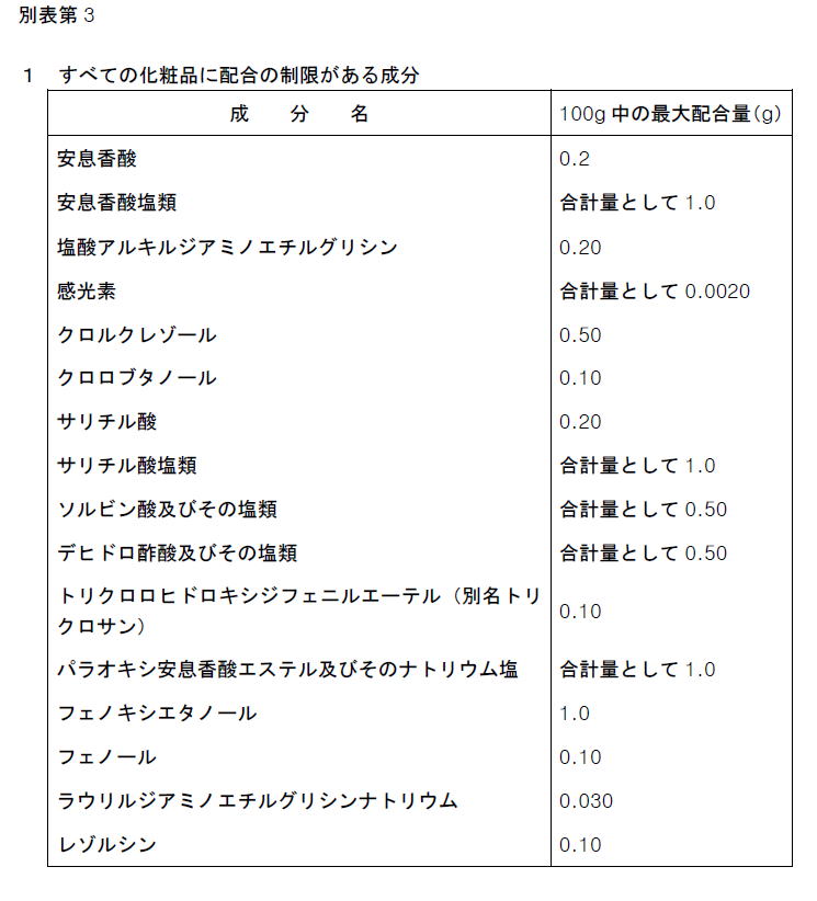 | 別表3-1/2(すべての化粧品対象) ポジティブリスト positive list |