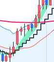 | 利食いの陰線が出ると階段線に近づきますが 流れができれば❻❼を起点で順行します。 ❽でエントリーします 2回目以降のエントリーは00秒の1分エントリーをお薦めします。 HighLowチャートに慣れてエッジの方が正確だと感じる方はエッジエントリーしてください。 |