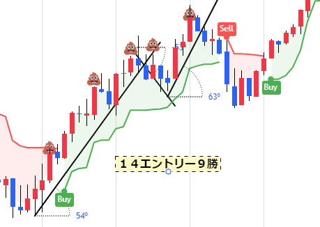 水平線ブレイク・トレンドラインカウンタークロス・2σタッチでエントリー FXではおいしくないレンジのようなトレンド相場でも、バイナリで根拠があればエントリーできます。 ![]() 21打数20安打95%であった。この高打率の原因は、ダウセオリ通りだが、ー意外にも相場が荒れていないためと良い結果と考えました。 2シグマのカウントは後からやったのでちょっと甘いです。しかしやったとしても勝っていた感じです。 ピョンピョン相場でないことが打率を押し上げたことです。 これがあっちこっち見ることのできる厳明人思います。 |