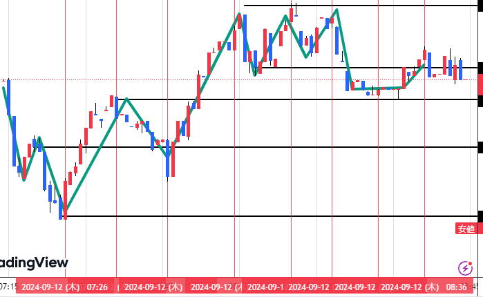 一般チャートで大きめに見ます。 終わった後ですがこの日はレンジが少なかった。 長いトレンドは何と言っても、レンジからの水平線ブレイク レンジが来たら根気よく抜けを待ちます。 山高ければ谷深し 谷深ければ山高し ![]() 相場の向き 簡単に21MAでもOkですし、他のインジケータでも、目視でもOK 反転の方がなだらかでやりやすいこともあります。90分トレンドには表と裏 裏と表ああるように感じます。 裏裏もあるし表表もあります。 現在が、上昇か下降か横向きかを判断します。トレンドになっていることが条件です。 終わったチャートだからなんでも言えますがここから学ぶこともあります 21MAで上昇していますが調整押し目で戻る場合もありますのでご注意 MAは絶対じゃないがタイミングを見るにはいいです。 90分トレンドが続きました 角度ないですが・・・ 剣のようなブレはトレンドでは無視 むしろ反発チャンス |