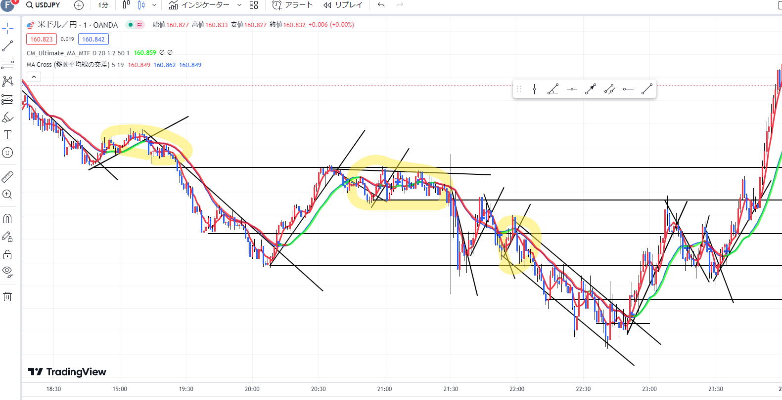 平均線20MAと トレンドライン カウンタークロス fx5 |