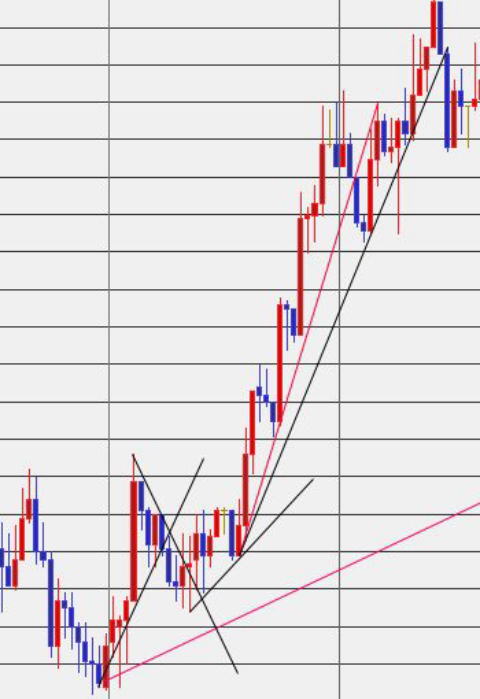 週足・日足で見て上か下かを見ます。日中の取引はきれいな曲線を描くわけではありません。それから5分足を見て判断します。 この作業が終わったら、トレンド線を自分で引いてください。 線の引き方は、大きな山の頂点と頂点を結ぶ抵抗線レジスタンス 底と底を結ぶ支持線サポート 高値をつなげる線や、安値をつなげる線を結んでこれから先の幅を予測するといいでしょう。 天井や底の探し方は詳細で |