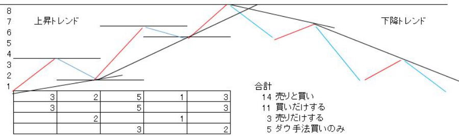 | ダウ理論検証 | ダウ理論検証 ブレイク手法に少し磨きを掛けられた気がしました。コメント内に書きました。 いつもトレンドとは限りません。ゆっくりなスロートレンドでは、少し大きな波がきただけでもうまく行かないことがあります。 今どんな流れなのかを大きい画面にして確認してください。 20201024 ブレイク検証をさらに掘り下げて分析した。 ブレイクで飛び乗り前回ショルダー抜けか、3連続続伸続落でエンントリーする。 ルールは、ポジションホールドは、エントリー後手前のショルダーまで我慢して耐える。それを割れば、損切り 含み益が60%を切れば終了 または利益が伸びればお任せでホールド 一部掲載します。中にはちょっとおかしいと思うのがありかもしれませんが、お許しください。 期間は20201023の11:00~20201024の6:00まで20時間 単純ブレイク回数は71回 結果 ①●即含み益が45回63.08% ②●最初は赤だがそのうち黒は11回の15.49% ③●1-2分で赤字が、15回21.3%であった。 なんだかんだで勝率は、79%である。頻度は、19.6分に一回来る頻度おいしくないものを止めたとすると エントリーは30分に一回程度であろう。 トレンド指示線が延長線上に当たるとトレンド転換がすでに始まっている時があった。 支持線が一回もキャンドルに当たらないで行く時はトレンドも好調。 リバウンドのたびに線を引き直すことが大事 引き直すことは考えの修正の第一歩だと分かった。 最初の線を残しておくと良いかも知れない。 平均線は使わないし、ほとんど見なくなった。平均線は、競馬中継の再放送みたいなもんだ。 しかし、方向性だけは参考になった。 通算 これならば少し精度を上げれば、損しないと心の中でウッシッシ ①●の改善 リバウンド開始後、少しの下げ調整があり、その後の本線第3波のブレイクに乗る。 と、含み益を伸びるので総合勝率が上がります。あくまで理想論です。 とこまで上がるか、下がるかわからないが、キャンドルの動きと長さを観察しするしかない。 ビュー--んと伸びたところが3波だと思うようにしている。 時間軸も考える。一回の流れは30分刻みで考える。1から5波で30分 2セットなら1時間 チャートに支持線を引いて当たった時はそこがトレンド転換予告かすでに転換済みと言えます。 市場は、常に動いていますので レンジになったと気づけば、しばらくやらないと良い。30分休憩で見てるだけでもいい。 ②●の改善 仕方ない部分もある。 レンジになったと気づけば、しばらくやらないか、果敢に上下射撃エントリーアンドアウトする。 でみやらない方が良い、条件付き注文なら良いかもしてない ③●の改善 100%の戦術は無いが即損切りできるように、注文の訓練をする。携帯ではやらない。 仮に失敗しても、損切りをルール通りに速やかに行う。次の反転からの3波ブレイクでは、 大きく利益が取れる信号だと分かった。 トレンドに逆らったブレイクはブレイクではないと感じた。 あたらに感じたことがあった。 とにかく感情的にならない。自分ルールを徹底して遂行 当たらないなら自分ルールが間違っていると気づくこと そして、また検証しましょう。 ![]() |