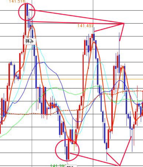 いづれは基ん戻る習性があります。 または ![]() しかし細かく見ますと上下に揺れていたり、川になって上下にうねっています。 イメージトレンドは上がりっぱなし、下がりっぱなしにはなりません。 放物線を描きます。TOPがあればボトムもあります。 そこに直線を引けば必ず交差する点が生まれます。 またトップやボトムの近くになると角度がなくなり、交差で0から逆転します。 => => 放物線は直線と交差する。中学の数学のような感じ また円はどこで水平線を引いても当たります。斜め線も当たります 水平線や斜め線を引く位置があります 21のブレイクも忘れないで天井トップ 黒 肩・頭 赤 真ん中 青 これはあまり知られていない 抜けたらやるのが基本 ブレることもあるので抜けるかどうかは勝負 勝つまでまけるまで待ちましょう けっこう当たります。 トレンドの流れは天井底の近辺でレンジになりやすく抜けるとスースウと早いからです。エントリー方向はトレンドラインの向きに トレンドラインなくたってロウソク見れば分かりますよね 肩 赤 底ボトム 黒 当たらない時もある。 ずううと動きますと線の位置で当たる時と当たらない時もあります。下図の通り こうなると上昇となります。いつまで上がるかは正確には分かりません。高値同志 安値同志を線で結ぶと分かり易いです。 => ![]() ![]() 青はトレンドライン 赤はモンキーライン 手練殿天井とそこはもみ合いが、モンキーラインはトレンドの中心ですいすい行くところか サポレジラインになりやすいです。これだけでエントリーポイントになります。 |