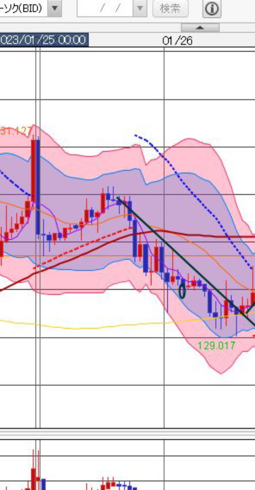 冬の毎日7時は、一瞬ですが、利息計算が発生しますので、板の兼ね合いで価格がリセットされ、もたつきます。 よって、ロウソクの連続性が喪失します。 幅が大きい時と小さい時があります。 夏は夏時間となり一時間早いです。 一般人のエントリーの手数料は法外な価格ですので、一般人はここではエントリーしないです。 月曜日朝一番の窓開け いつかは締まるだろうと気長に構えます。 ![]() 月曜日 市場7:00オープン ここですの窓窓開けと締まりの陽図 価格が飛ぶことを窓といいますが締まるのが80%と言われています。いったん下落で始まり戻してきて締まったあとトレンド トレンド発生の信号と考えてもいいかもしれません。右の○は巨大下ひげで売りを決済しました。超長いひげ注意です。ボリ3σタッチ 不思議にもこの線が安値の抵抗線になっていきました。 締まるとは限らないので固執するのはやめましょう。 |