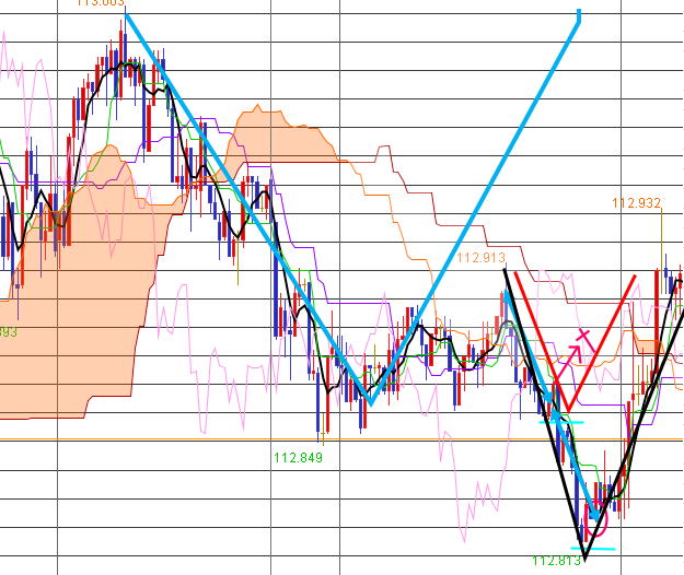 手じまいまでの道のり 川から外れたら終わりにします。 最初は1分足で入って、しばらくしたら5分足にしてみます。 画面は2画面設定して左右で見比べます。 1分足でクロスがでても5分では出ない場合があります。 こういう時は我慢していて5分足で明確にクロスしたら終わらせます。 同時に逆のエントリーをしたりします。 そこで反対の取引にします。いったん止めて休憩しても良いです。 エントリー後は、どこまで伸びるのかどこで抜けるのか?誰にも分りません。 よって推移を見守り、あるところで終わらせます。 基本は、トレンドラインクロスです。 トレンドクロスしてプラズマサインが出たら終了ですそこがまた反転のエントリーです。 どんと伸びたら終わりでもいいのですが、それじゃ上達はしませんね。 耐えることも大事です。 20211111の9:00ころの図 ![]() トレンドラインがろうそくにクロスして逆方向のろうそくが出たら平均線の向きとクロスする位置を見ます。 上図では最初にクロスして売りから買いに転じ、上昇して二本のトレンドラインをクロスしたので 買いをやめて売り初め、またクロスして買い4分後には売り その後レンジ 最後におもいっきりブレイクして飛び乗りです。 全部エントリーする必要もないです。大きな足で下降トレンドなら売りだけエントリーします。 トレンド線を二本引くこともありますがワンバウンドだましにあわないためです。 トレンド後にはワンバウントする場合とそのまま行ってしまう場合がありますが どうなるかはわかりません 下図では、 原則は元に戻る基本の予測が空色のVラインでした。 しかし、すぐに反転して下降しています。 赤のVは当初の予測でしたが、ブレイクして下に抜けましたが。 前回トレンドの長さと同じだけ伸びました。この傾向も覚えるといいです。 BOX理論です。 最後の反転の黒線の部分はセオリー通りになったわけです。 よって、うまく予想通りの場合もあるが行かないこともよくあります。 時間がだいぶ経って戻ることもざらです。 いずれにしてもトレンドラインクロスでやめれば勝ち逃げできます。 細かくやって勝ち逃げすることも大事です。 ![]() 実際には上記のような補助線は引いて行っておりません。上図はトレンドがどこまで戻るかのイメージにすぎません。 作戦中に書いてもあまり意味がありません。 大きなトレンドが期待される場合は、起点から見て最高益の70%まで我慢すると 再びトレンドになってさらに伸びる場合もあります。 上の図でも113.003あたりで売りで入ると112.849まで下がり、リバウンドしましたが 70%まで我慢して112.913を乗り越えれば、112.813まで行けます。 あくまで理想論です。調子の良いときはこうなることもあります。 そういうときこそもっと大きく全体を見ることが大事です。 でも最初は細かく行って、形に慣れる訓練をします。 |