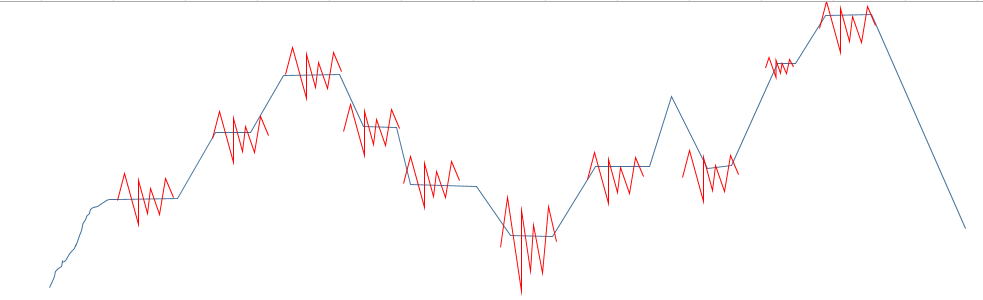 水平線を引けなくて、水平線のブレイクがない相場をレンジと理解しましょう。 細かくロウソク一本で見ればN波形で動いているのがわかりまし。 レンジには種類があります。 ある決まった価格帯の中でろうそくが上下する様となっています。 大きく考えれば、相場自体もレンジです。戦後1ドル360円時代から始まり、1973年2月から市場性に移行しました。 やがて120円時代となるも100円(これ以下もあった)時代を経て 今の140円前後になりました。いきなり1000円になることもないです。MAX幅は360円から75円の中でゆっくり推移しています。 ここでのレンジはスカルプとして、上下の幅が、0.2円から0.5円以内の値動き反復のをさします。 上下の値幅にはついては、大小あり、その時その時で変わります。ま平らなレンジもあるし、斜めに見えるレンジもあります。 一本レンジ 3本レンジトレンドに見えても水平線の引く場所がない 4本レンジ![]() 英語だとリフレクタルです。 ある決まった価格帯の中でろうそくが上下する様となっています。 大きく考えれば、相場自体もレンジです。戦後1ドル360円時代から始まり、1973年2月から市場性に移行しました。やがて120円時代となるも100円(これ以下もあった)時代を経て 今の140円前後になりました。いきなり1000円になることもないです。MAX幅は360円から75円の中でゆっくり推移しています。 ここでのレンジはスカルプとして、上下の幅が、0.2円から0.5円以内の値動き反復のをさします。 上下の値幅にはついては、大小あり、その時その時で変わります。ま平らなレンジもあるし、斜めに見えるレンジもあります。 ![]() 5分は以下の通りで自分でレンジ部分を探してください。上記の5倍の幅で見ることができます。 ![]() このように見ますと70%以上が、レンジにあります。利益が採れるトレンドは30%くらいですね。パソコンをつけてチャートを見たら ほとんどレンジにいると思ってもいいくらいで トレンドを待つことが仕事となるわけです。すぐやったら勝てるという甘い気持ちは禁物です。平均化すると相場が見えてきます。 ![]() レンジの部分を平均的に見て平らとすれば実際のトレンドなんて相場全体の20%じゃないかとも感じます。 |