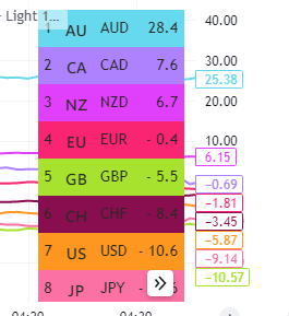 バイナリではスプレッドが無いので良さそうな市場が良いです。レンジも少なく上下が15分で動いたり トレンドが長いとやりやすい トレーディングビューの Currency Strength Chartを表示させます。