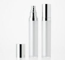 | LA アクリルダブルWALL30mL オーバーキャップ(銀) x エッセンスポンプ銀・スーパースプレイ x 中PET x アクリル30mLシリンダー(パール) |