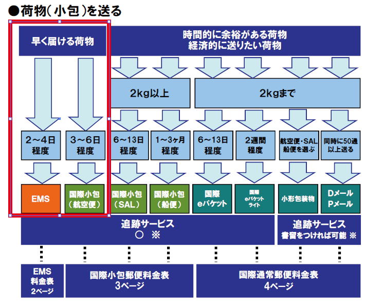 EMS料金表 スーツケースに入りきれない時は飛行機では無理なので送るしかない。
