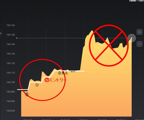 | 転換を狙うと勝率が高いのは 2倍以上の勢いがないと転換は、起きないものだと解する。そのパワーは1分丁度では終わらず、 階段が出るまで待つ 待ち方 このような環境(神トレンド)をひたすら待ちます。後はエントリーするだけ。 ![]() 実技 1.坊主を待つ あくまでも可能性で優位性がありそうだとして仮説です。期待値 => 90秒の神ライン=>ラインチャート画面は、毎秒動いていますが15秒幅が6本あります。ということは15秒x6で1分30秒の幅と分かります。 坊主の理由は、以下の図の通りです。 ![]() ヒゲがあり、順行すれば勝率が上がります。 単発なら不安定なのでよく見てください。 2連続して安定した流れになるかどうかです。 ヒゲがあるかないかでひげがあれば反発で読みずらくなりますが、坊主なら安定した流れであると思っていいです。 チャートの都合で流れを時間で切っているだけなのでその後も続くって考えるのは、自然なことです。 もちろん坊主だからって言っても次のロウソクが100%順行するかどうかは分かりませんが可能性は高い コアタイムなら勢いがあるのでなおさら可能性が高まります。 閑散相場だとぶれることもあり、不安定なので注意します。 また最近は自動売買プログラムでエントリーすることも多い、コンピューターなので00秒でエントリーすることも多いと 00時間で相場が変わるのもそのせいだって誰かが言っていました。 坊主だから続くとは限りません。それも相場。 ![]() 坊主・ちょびひげ坊主が出たら目線はラインチャート 少しの上ひげは、大した反発とみなさずOKとしますほぼ坊主なので行けそうだ。目線がラインチャートへ いきなりちょいブレだが心配しない ここで123ルール適用 0までは目線は普通チャート 0からはラインチャートへ①⓶でエントリー ⓪でもいいかな 統計から2本連続が多く3本連続は少ない、4本連続はあることはあるが奇跡レベル 神トレンドは終わってみないと分からない。 ![]() ![]() 普通チャートを見るのはボラがあるかどうかが分かります。 ハイローのメモリは動きで自動調整なので分かり易いが価格幅は分かりにくい 慣れるしかない。 この神相場は、普通は2分~2分30秒で消える妖精のようなもんです。次回から妖精:FAIRYフェイリーと言います。 ![]() 2 水平ラインブレイク ボリンジャーバンドのラインブレイク ![]() インジケーターはたくさんありますが、どれもこれも結局は何らかの平均値です。 元はデータであり、そこからロウソク足 そこからさまざまなインデックスが派生します。 平均はすべての結果であると思います。ぐちゃぐちゃしている時上か下か分からない時でも示してくれ 使いようによっては便利です。また期間をデータベースにするため急騰急落のような価格変動の時や トレンド転換時には平均化が遅れるのでデメリットとなるので前もってデメリットの感覚をつかんでおくと良いです。 まあ1分のインジケーターで15 |