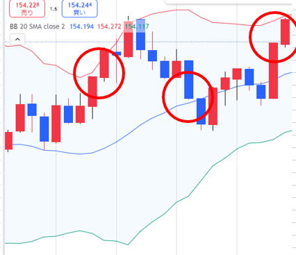 =====> | ![]() 大きいロウソクは慌てないで2分見るだけ バンドウォークになっているか継続しそうな感じに Lowエントリーポンポン |
