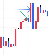| ③トレンド中 押し目抜けでも2連続になる。 サンドイッチスライド 松葉○し トレンド中、ロウソクが短くなったり反発 気が付けば、20分から30分くらいのトレンドになっています。 追撃で利益が一番出る時です。 トレンドの中であっても長短があり、繰り返します。 シグナル トレンド中に短いロウソクが出ると最初のシグナルになります。 または反発のロウソクが出て前回ロウソクより上に位置するろうそくの孕みになった時です。 次に、そのろうそくを次のロウソクが順行したらエントリー これでサンドイッチの完成です。 利食いの押し目で終わるか、反転するかは分かりません。 よくロウソクを見てください。これは型です。 ![]() 次のロウソクもエントリーします。しかし ロウソクの大きさは大きくもない、小さくもないロウソクなら成功率は高くなりますが100%ではありません。 負けることもあります。ラインを使っても同じことが言えます。下図 流れウィ取るので、ラインタッチでエントリー3分が良いです。 天井近くなれば1分でも 最後のゴール前ダッシュの長いロウソクが来たら行ってもあと一本程度です ダッシュの長い上ひげなら次は落ちる確率は70% ![]() |