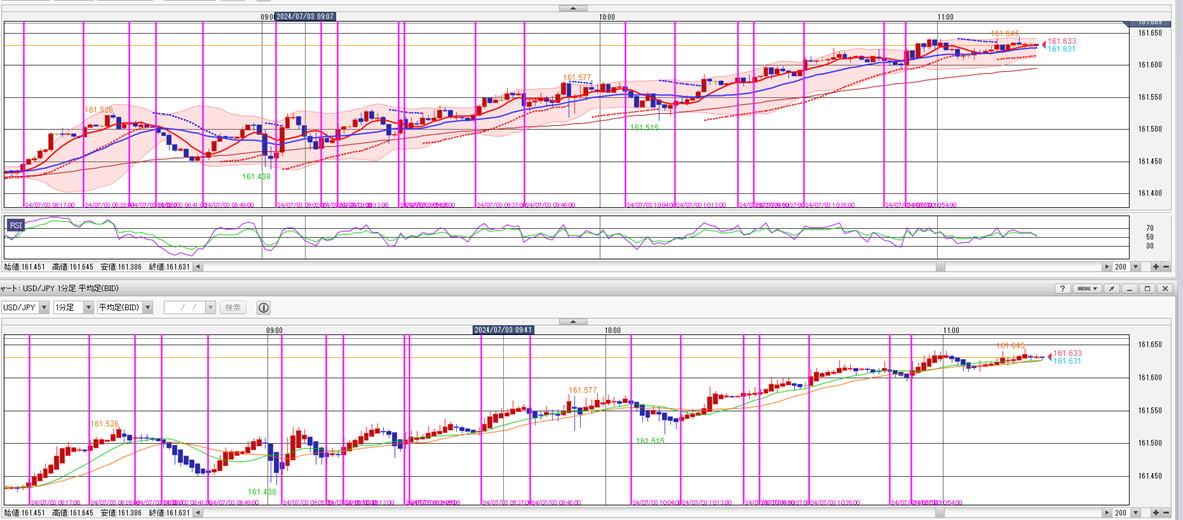 ![]() 良く出る相場 6:4で拮抗ずれが続くと考えます。20240703朝 ![]() |