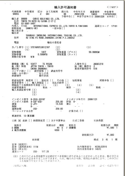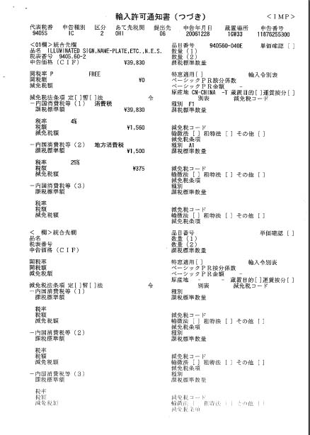 通関料 ; ¥11,800.−