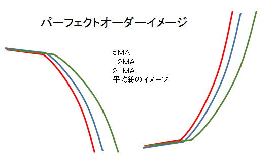 | 定義 | ずばりこんな感じのもの![]() こうじゃなければならないという決まりは見たことがありません。 自分流にいうtと、3本の平均線MAは上図の様に山手線の線路のように 同じ向きに並行している様子を言います。 ちなみに5、12、21、45、75、120の線がパーフェクトオーダーだっていうのは あまり見たことがありません。 では、二本がパーフェクトオーダーの時は何というのか調べたらどこにも書いていません。 まあ、上記の設定で5と12が平行になれば21は時間の問題です。 基本的に75未満のMAが、3本同じ向きになればパーフェクトオーダーと思ってください。 例)12、21,45とか5,12、21 75も一緒にパーフェクトオーダーになることは珍しいです。 またパーフェクトオーダーの上昇があれば、2-3時間後には下降しますので それも楽しみな出来事になるでしょう。 中層を制する人にとっては簡単な手法です。知らないうちにパーフェクトオーダーということも しばしばあります。いつもはこんな感じです。線を引けばなんとなく流れってわかって来ます ![]() |