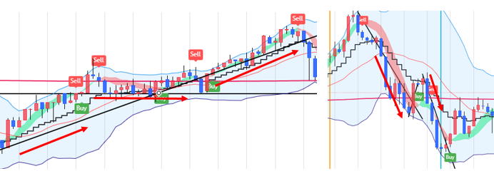 | DEAL BB with MA (With Alerts)というインジケーターを使っています。20251027 階段線を(NMAblack line)と言います。。 中央部分を横切る赤い線はVWAP MIDDLE LINEと言います。定義は書いていないですが100-200のMAくらいの長期線として考えます。ロウソクが上なら上昇 下降ならロウソクは下 ![]() チャート画面に20MAと5MAの二本を使っても同じような原理です。ここはバイナリコーナーなのでFXならロウソクと20MAで十分です。 勿論、他のエントリー根拠とその手法もありますが、それはそれでうまくなれば勝率を検証して追加してやってください。 私はNブレイク Иブレイク 水平ブレイクなら この手法とは関係なくエントリーしますが、ダブることもあります。 |