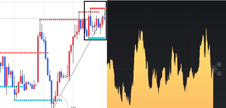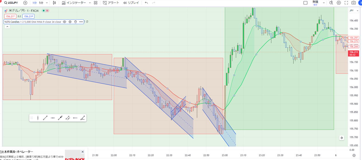 | VLTSCANDLE のインジケータ 一時間の範囲で 上下横がわかる |