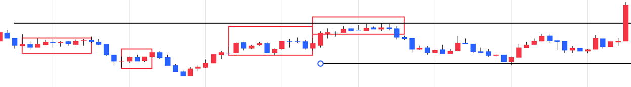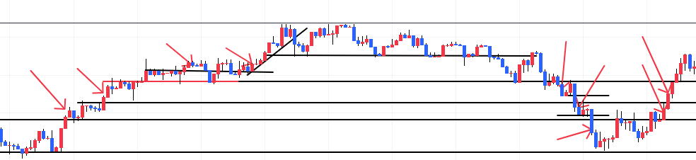 葬式相場や階段相場は、ド短期では勝てません 自分ではLLの階段相場を怪談相場と言っています。 陽線陰線交互の葬式相場もなかなか勝てません。ラインチャートならハリネズミ相場 一回の値動きでもとに戻ったり、そのままスライドする時です。 頻度は無いので気にしないようにしましょう。 ![]() このような相場の時は 線を引いてタッチで逆エントリーしていきます。後はパターン式で勝負を仕掛けますが 初心者はやめた方が良い。一回負けたらこれだって思ってそのトレンドが終わるまで休憩が良いでしょう。 |