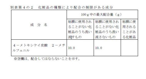 タイソウエキスについて制限が加わった 粘膜なし洗うものは無制限 粘膜で洗うものも無制限 粘膜に使用される時は5g/100g |