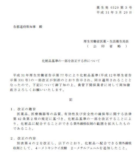 | 2019/03/20 H30 紫外線吸収材 同じものでっても官報とは 異なる名前 |