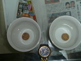 | ライザブマットに 洗浄水を入れた容器を 乗せて観察実験 ![]() 左は波動 右はノーマル 波動コースターの方を より汚い平成5年 右はすこしましな平成7年 2012/11/24実施 波動コースター敷いて 水道水を注水し、 10円を入れて経過観察 5日経過後劇的変化なし==> |