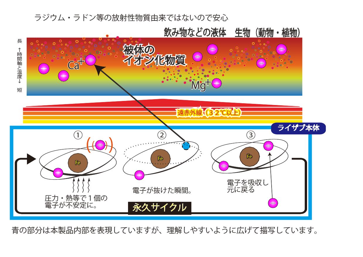 | ライザブ ハンディー ノーマル ラジウムの電子を使わない しくみのマット 一般の健康の範囲なら 十分です。 二価鉄の外周の不安定電子を 利用します。 |
