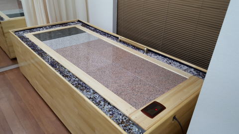| 新規サロン向け陶板浴(大理石)浴ベッド <<導入後1分で営業開始できます。>> 製品構成 電熱マット100V(医療機器承認済み) 人造ラジウム大理石 (ラジウム大理石6枚と強化ラジウム大理石6枚) ベッドの土台(二分割稼働車輪付き) ベッド土台カバー1枚 起毛敷パッド アルミ保温シート5個 マイヤー毛布シングル1枚 ホテルタイプ大判バスタオル3枚 電子数500〜8000まで 。 既存のものを弊社独自技術で加工して性能を格段に向上させます。 全部ラジウムの人造大理石でゴージャスです。 電子数が高いと時間制限があります。 計測器で計測し、算出いたします。 電熱床は医療機器承認うを受けている機械を使用しています。 床温度は20℃から55℃まで設定可能です。 見てくれを気にしなければ、タイルの裏を表にして、敷けば出力が約5〜10倍になります。 見てくれが悪いので、ベッドの起毛の敷パッドを敷いてください。 (体感温度は当然下がります) 衛生的で寝ここちもよくなり、パフォーマンスが向上します。 災害避難用のアルミニウムの保温シートをかけてください。 繊維はいくら厚くても、5cm以内の距離ならば、電子は貫通してきますので、問題ありません。 ※写真のベッドは横板が加工されていますが、 現在は、2分割されていて横板はありません。 また、高さが30-40cmに仕様変更になりました。 可動式です。カバーはベッドカバーを使用しています。 希望があれば、天板の下に引出を付すこともできます。タオルなど収納できて便利です。無料 オプション ブラボーマット・ギガマット 大理石では強さに限界がありますが、それを超えます。 水晶サイドデコレーション 好みで変更できます。 踏み台は現在は不要です。ベッド自体を低くしたためです。 ベッドの中に小物を入れる引き出しも作れます。無料 営業についての許可 脱衣所を設け、保健所に登録申請してください。 |