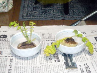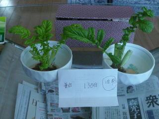 左は、弊社植物バイタルパウダー使用で、根から茎の30本の立ち上がりを確認、右はノーマルで15本の茎のの立ち上がりだった。