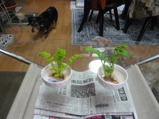水道水の方は、4本の葉が枯れたが波動はOK 犬もいる |