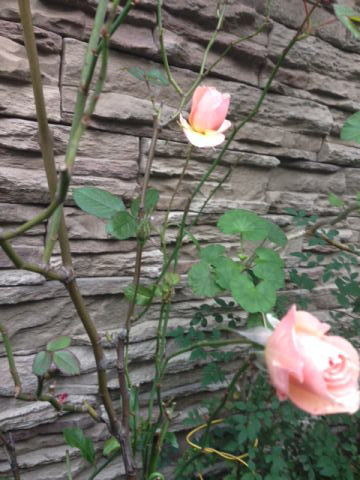 隣人のバラは、葉が一枚もない状態なのに不思議にも弊社のバラは、見ての通り、生き生きとまでは行かないが、葉が枯れていない。
