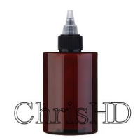 先端キャップが組み込みで外れません。よって先端キャップの紛失の心配がありません。 地味なデザインですが、消費者の事を考えるとベストです。 ノズルキャップを回すと、上にツイストアップして動きます。液体が出ます。逆に回すと締まります。 |
