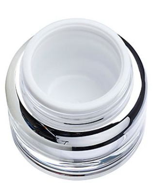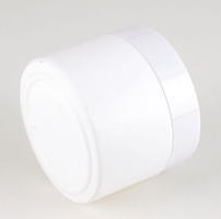 | LA 二重構造容器PP光沢クリームジャー PPフタ(白・アルミ真空蒸着鏡面塗装銀) x PP中フタ(OP) x PP中容器(二重構造) x PP光沢シリンダー50g(白・乳白色 艶消し) |