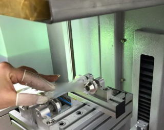 型枠 にセット ==>![]() 印刷開始 UVライトが光っています。ピシューピシューと左右にヘッドが動きます。 右は拡大図 ===>完成品 アッという間です。一列15秒間くらいです。 |