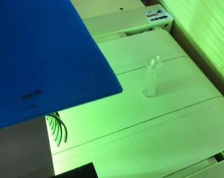 型枠 にセット ==>完成![]() 印刷開始 UVライトが光っています。硬化は、0.5秒 |