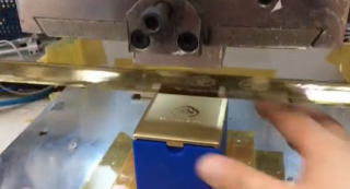 => ・・・平面容器 完成フィルムを押す銅版と固定の型は先に作っておきます。すごい力で押します。ブッシン・ガチャン ブッシン・ガチャンて音がします。 ホットスタンプフィルム ご覧の通り、回転軸の固定器具は不要です。フィルムとフィルムを押す銅版は、先に作っておきます。すごい力で押して回します。ぐりぐりぐりって音がします。 60000円からとなります。(すべて込み込み)(税抜き) |