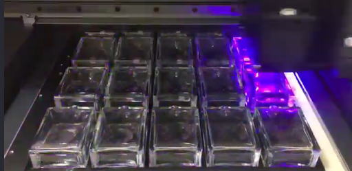 | UV平面シルクスクリーン印刷 フルカラー 印刷機のプリンターヘッドにUVライトが設置されていますので速乾です。 |